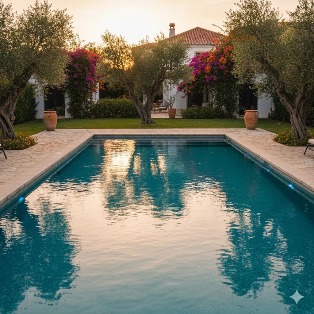 Piscinas à medida em betão, fibra de vidro ou liner — projetadas para o seu espaço, clima e orçamento. Do primeiro esboço ao último azulejo.